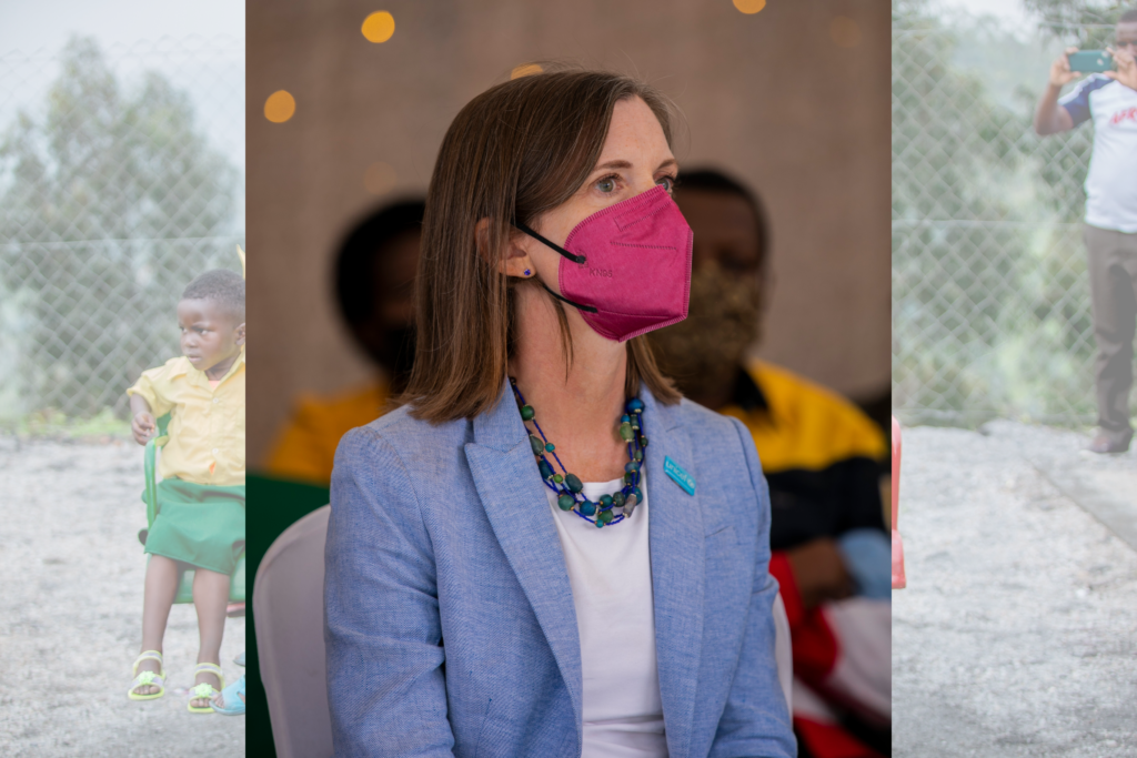 Julianna Lindsey, the UNICEF Country Representative in Rwanda, engages a child at the newly launched ECD centre at Gifurwe in Burera District on March 18.