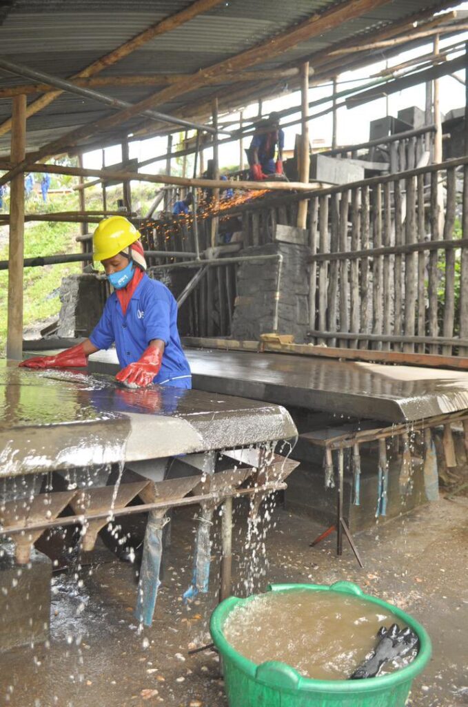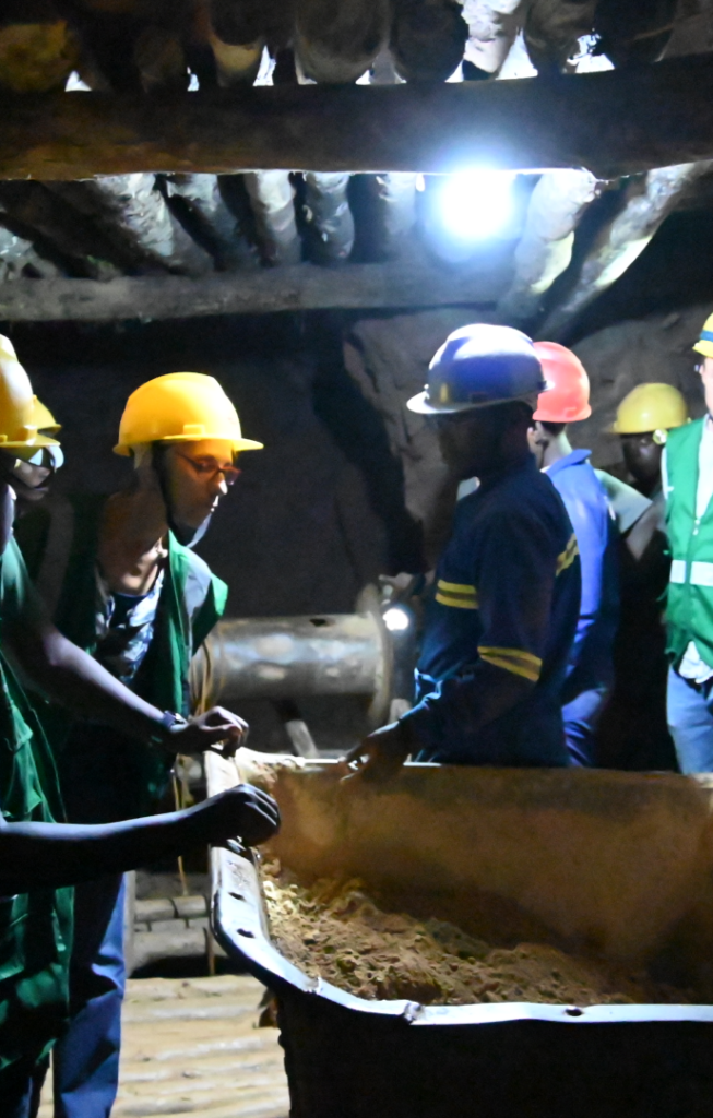 By semi-industrial mining, we improved the recent mining conditions from artisanal by adding some facilities in terms of mineral transport, water supply, blasting, jackhammers and the introduction of a small ore processing unit.